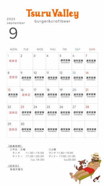 鶴ヶ峰のハンバーガー「つるバレー」 9月営業日